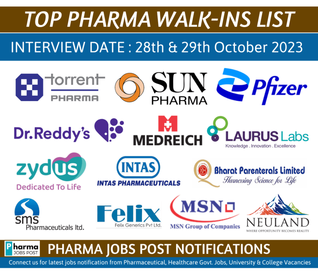 TOP PHARMA WALK-INS INTERVIEW LIST – 28th & 29th October 2023