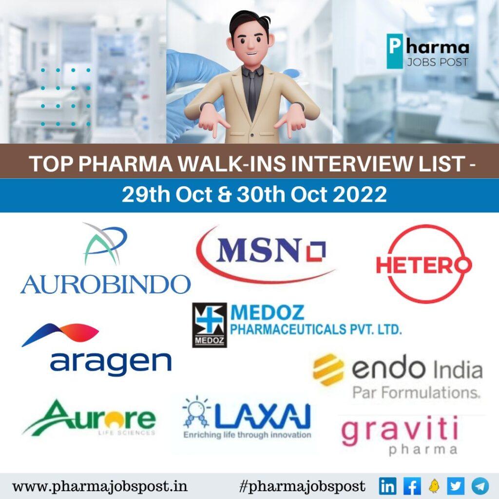 TOP PHARMA WALK-INS INTERVIEW LIST – 29th Oct & 30th Oct 2022