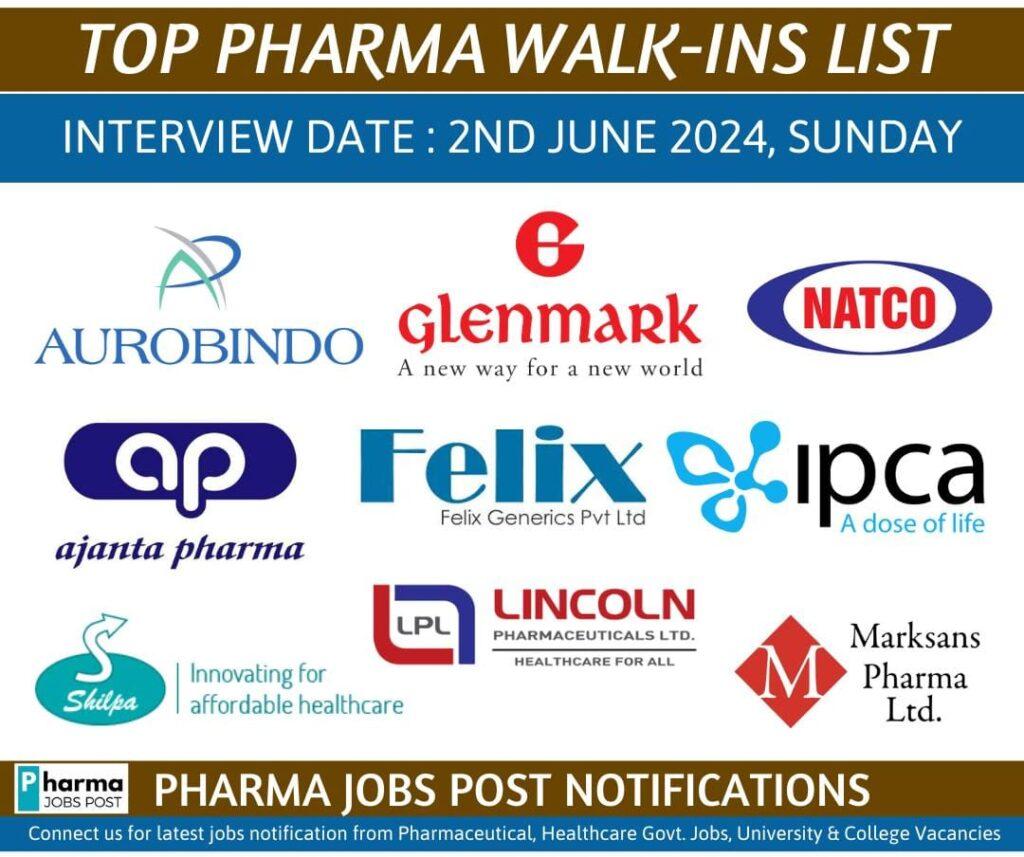TOP PHARMA WALK-INS INTERVIEW LIST – 2nd June 2024, Sunday