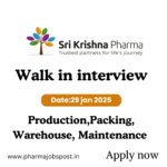 → Candidate with experience in the Pharmaceutical industry only need to appear for the interview.