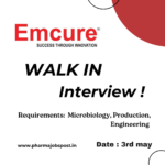 Qualification: M.Sc./M.Pharma/B.Pharma