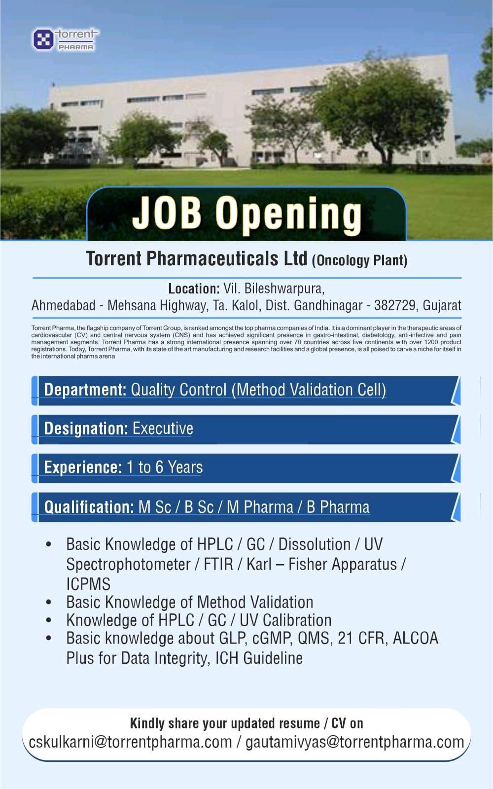 Kindly share your updated resume/ CV on cskulkarni@torrentpharma.com/gautamivyas@torrentpharma.com
