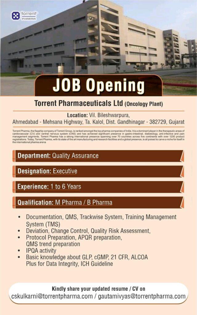 Torrent Pharma Job Opening for QA & QC department – Apply Now
