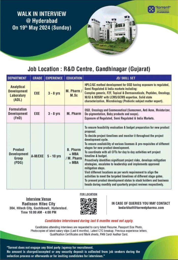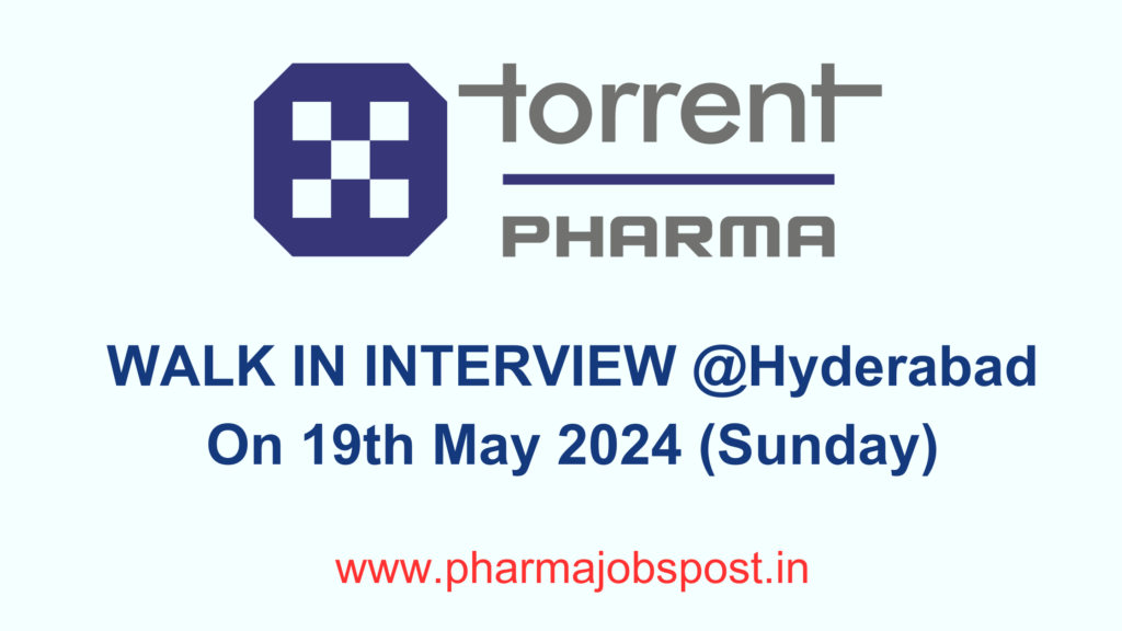Torrent Pharma walk in interview @ Hyderabad On 19th May 2024 (Sunday)