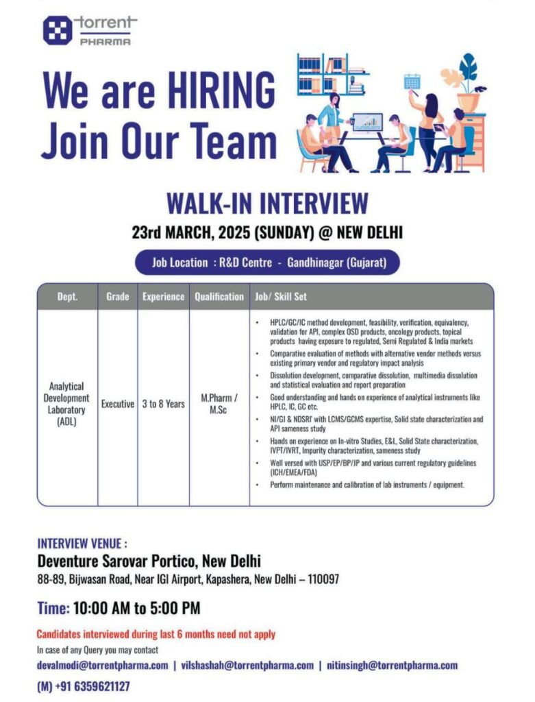 Job Location : R&D Centre – Gandhinagar (Gujarat)