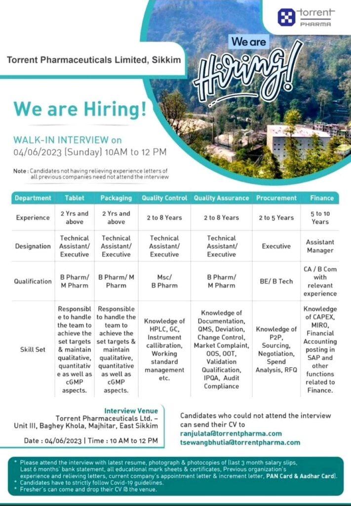 Qualification: B Pharm/ M Pharm,Msc,BE/B Tech,CA/B Com