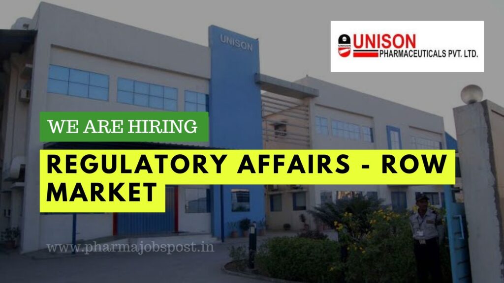 Unison Pharmaceuticals hiring for Assistant Manager – Regulatory Affairs – ROW Market