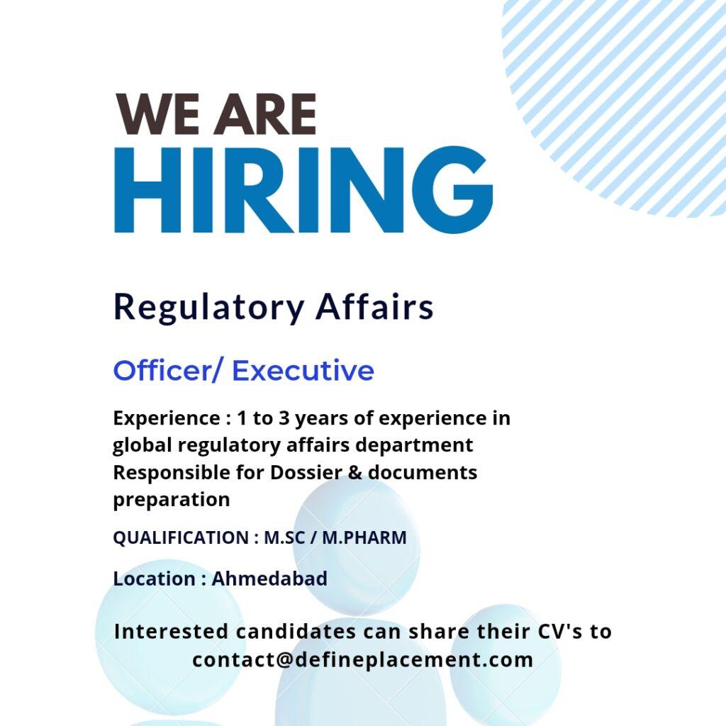 Urgent hiring for Regulatory Affairs department at Ahmedabad location