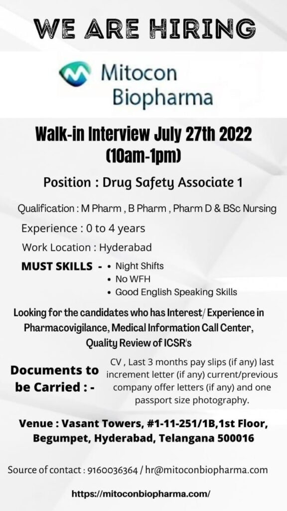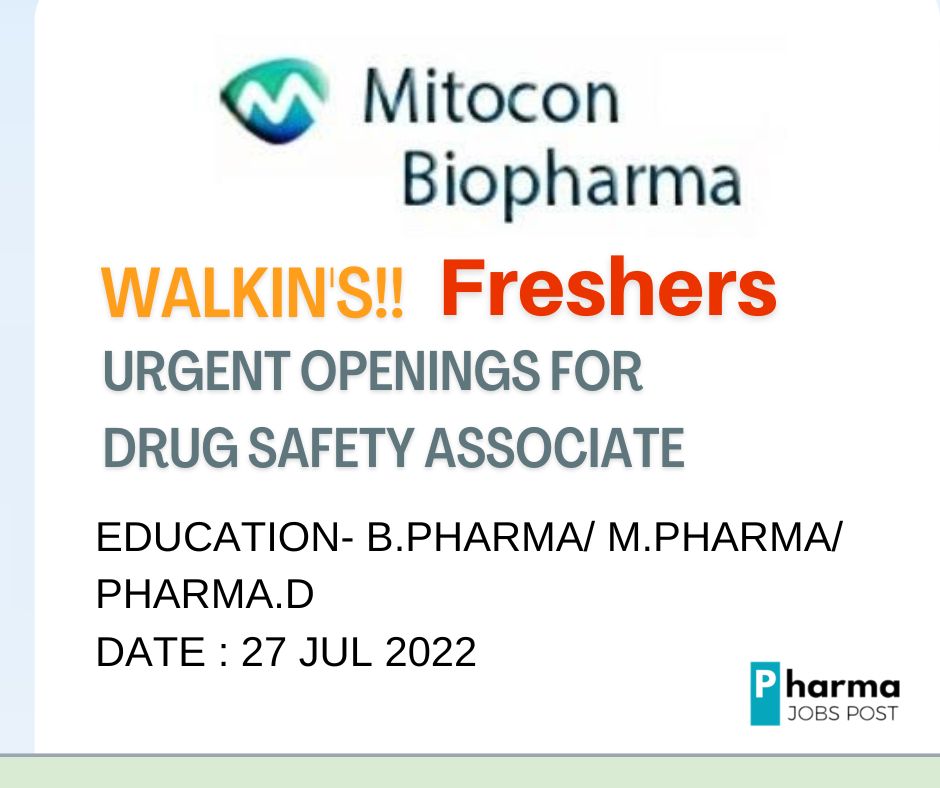 Urgent Openings for Drug Safety Associate- Walk In Interview for Freshers on 27th July 2022