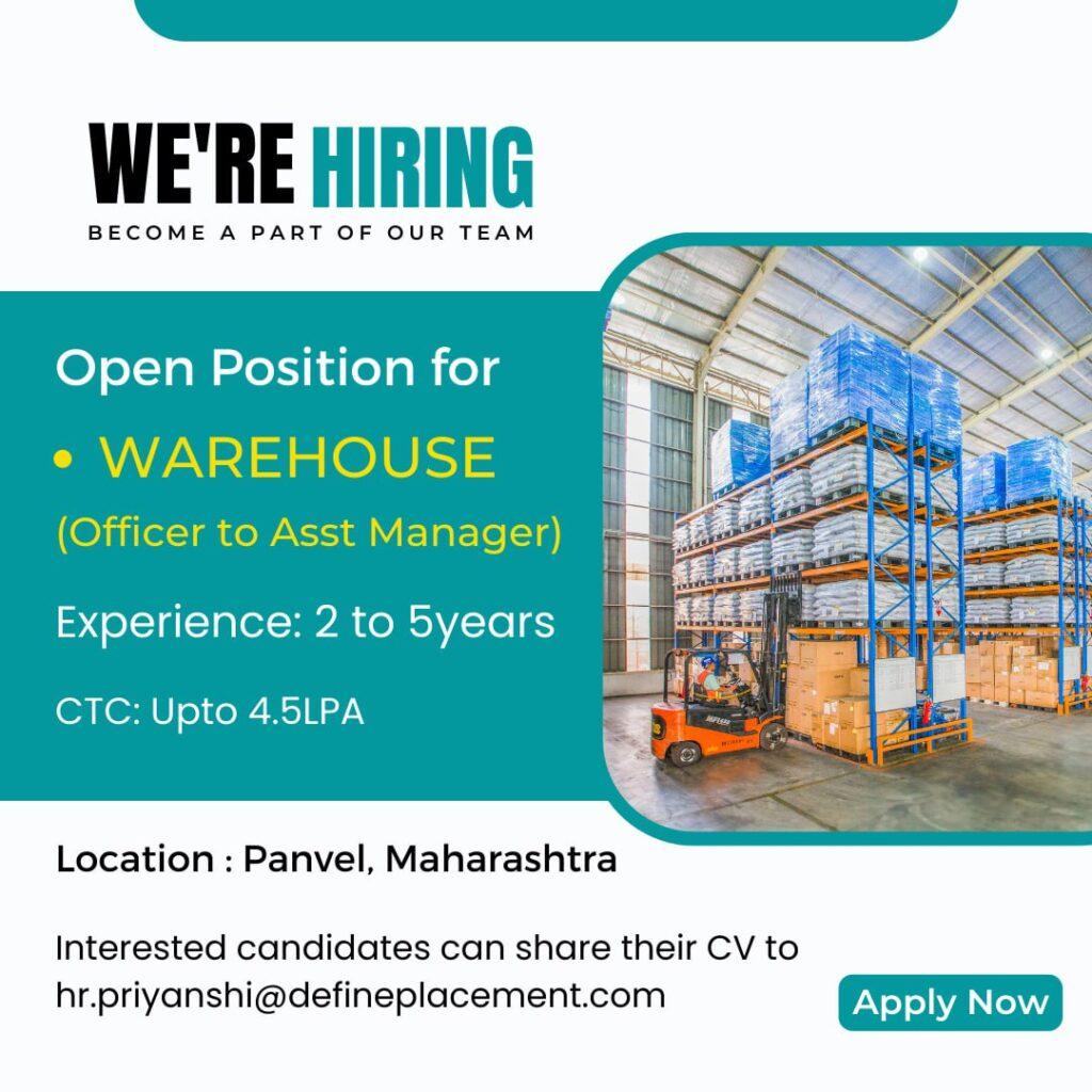 Urgent requirement for Officer to Asst. Manager Position in Warehouse department at Panvel
