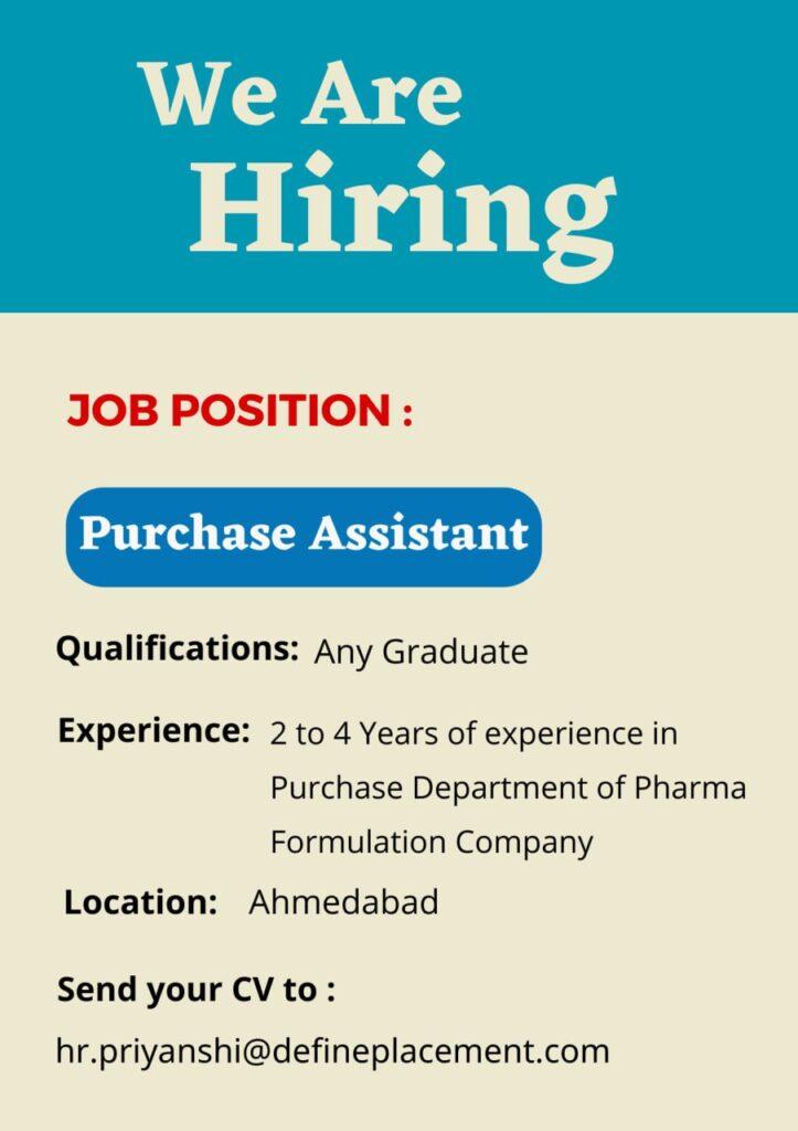 2 to 4 Years of experience in Purchase Department of Pharma Formulation Company