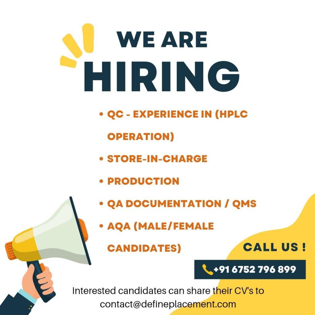 1) QC – Experience in HPLC Operation (Male/Female Candidates)