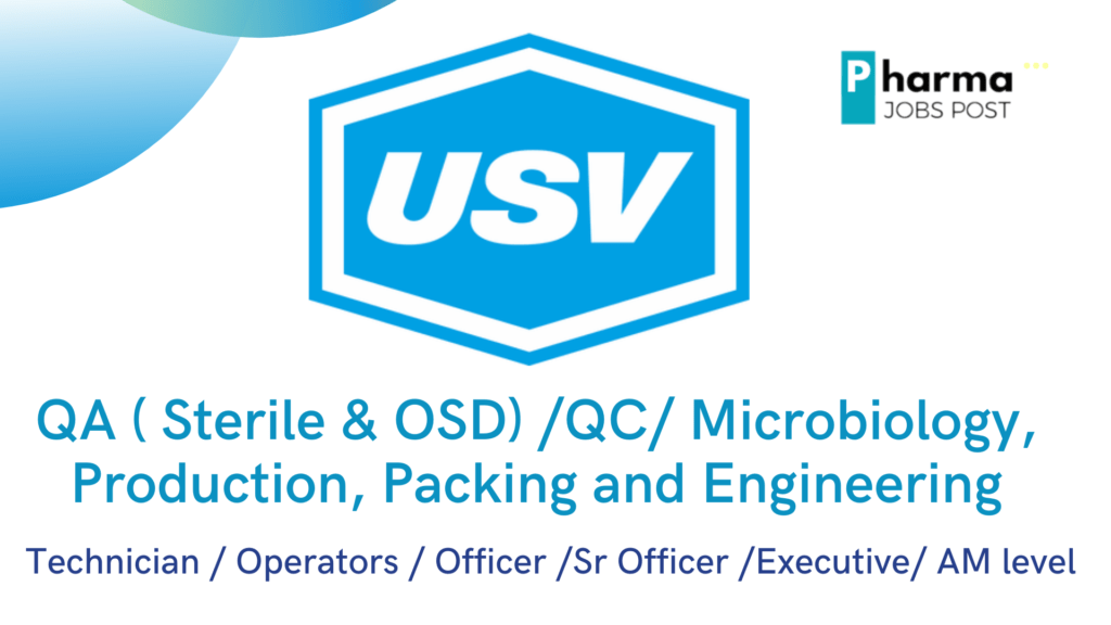 USV Private Limited, hiring for QA (Sterile & OSD) /QC / Validation / Microbiology/ Production/ Packing and Engineering departments