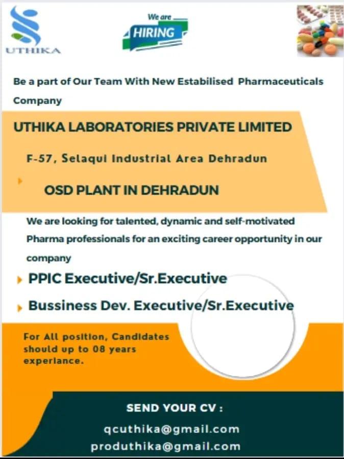 UTHIKA LABORATORIES PRIVATE LIMITED- Newly Established Pharmaceuticals Company hiring for Executive/ Sr.Executive- PPIC/ Business Development