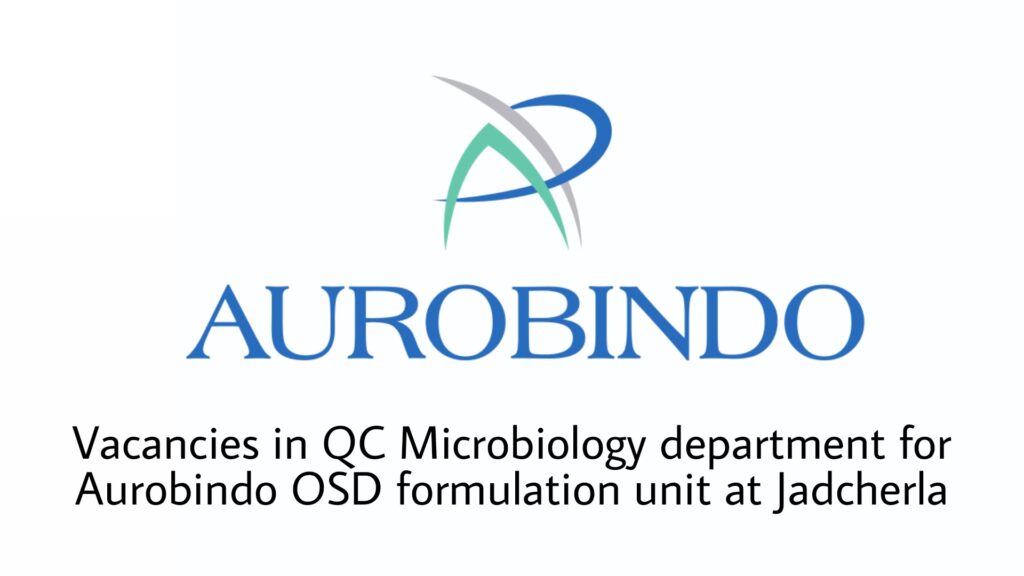 #Vacancies in QC Microbiology department for Aurobindo OSD formulation unit at Jadcherla location.