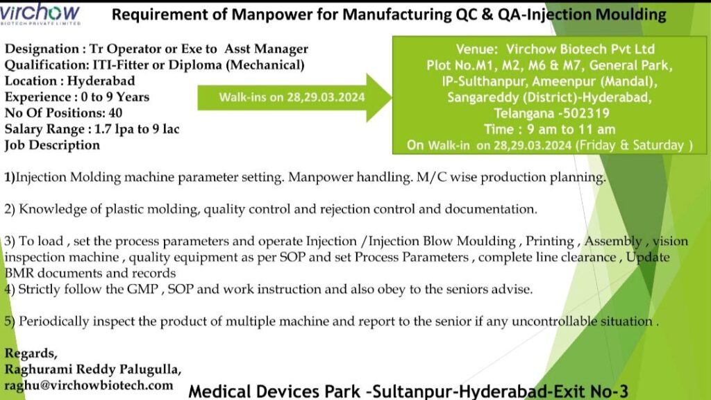 Requirement of Manpower for Manufacturing QC & QA-Injection Moulding