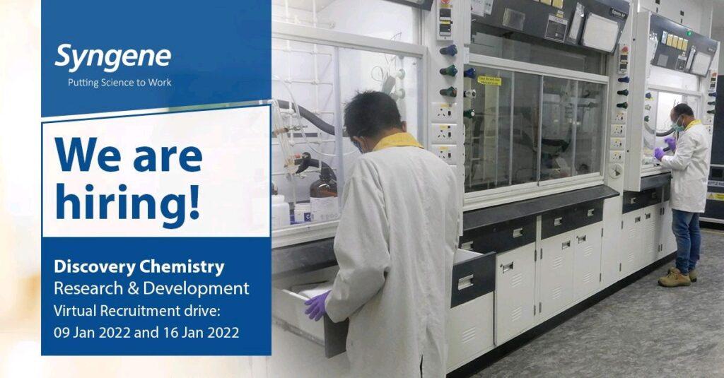 Virtual recruitment drive on 09-Jan-22 & 16-Jan-22 for multiple openings in Discovery Chemistry for R&D requirements @Syngene International Limited