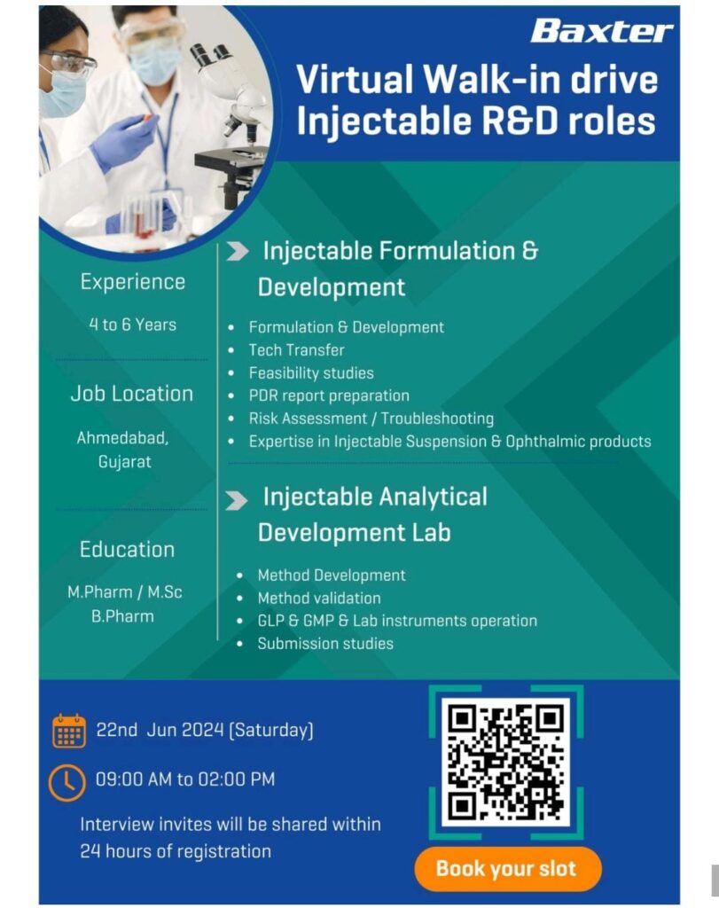 Now hiring for experienced Injectable Formulation & Development / Injectable Analytical Development Lab professionals.