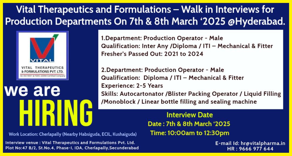 E-mail Id: hr@vitalpharma.in
