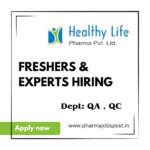 Qualification: B. Pharmacy /M. Pharmacy /MSc