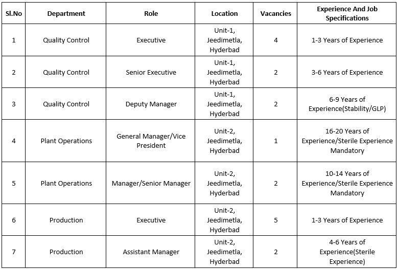 Vivimed Labs Limited job vacancy for Executive to Vice President in Quality Control, Production, Plant Operations