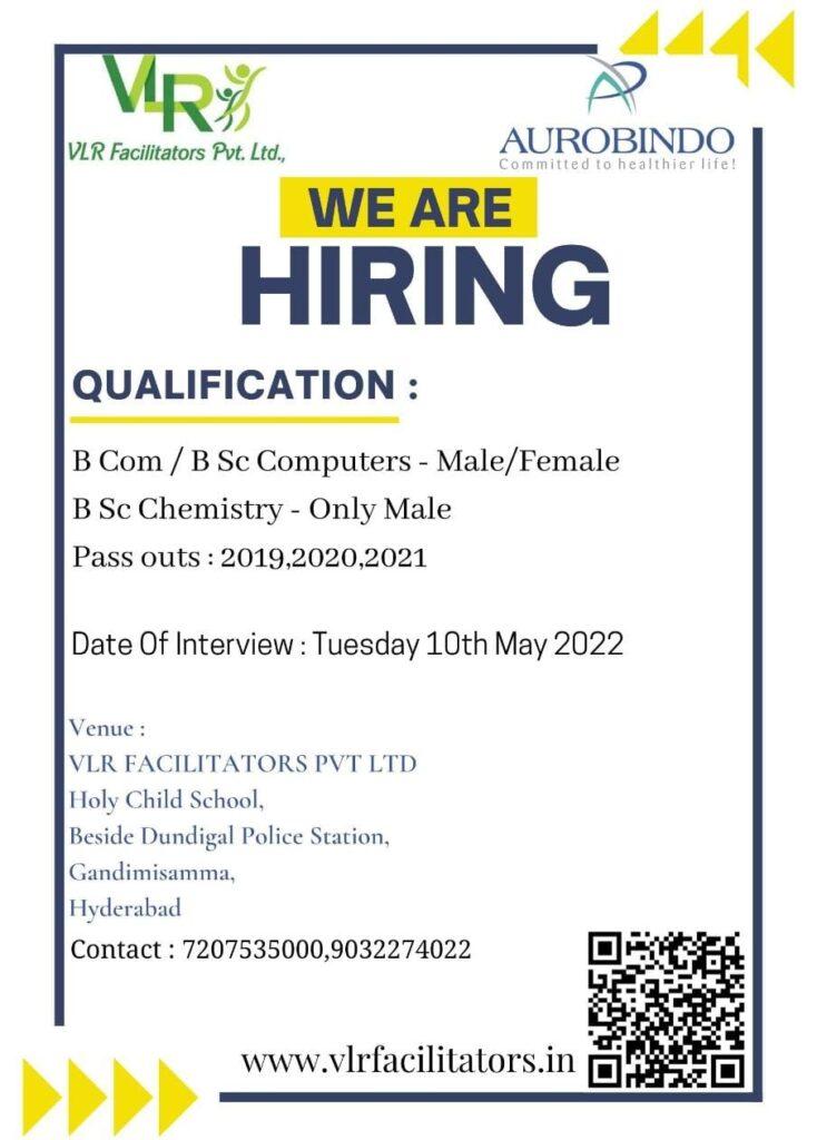 VLR Facilitators Pvt. Ltd.,(AUROBINDO) hiring FRESHERS Candidates || Apply Now