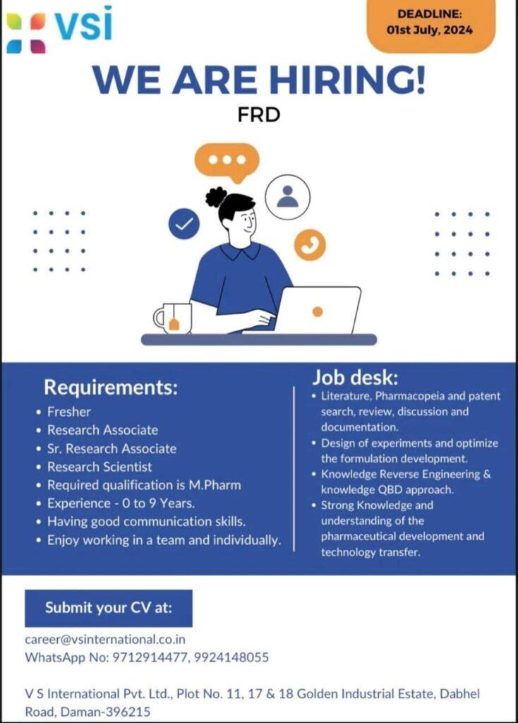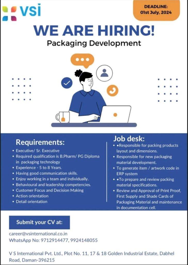 VS International hiring Freshers & experience in FRD & Packaging Development department