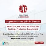 - Quality Control (QC) – Executive: Open to B Pharm, M Pharm, or MSc graduates. Skills required include expertise in HPLC, Dissolution, UV, and thorough documentation and review processes.