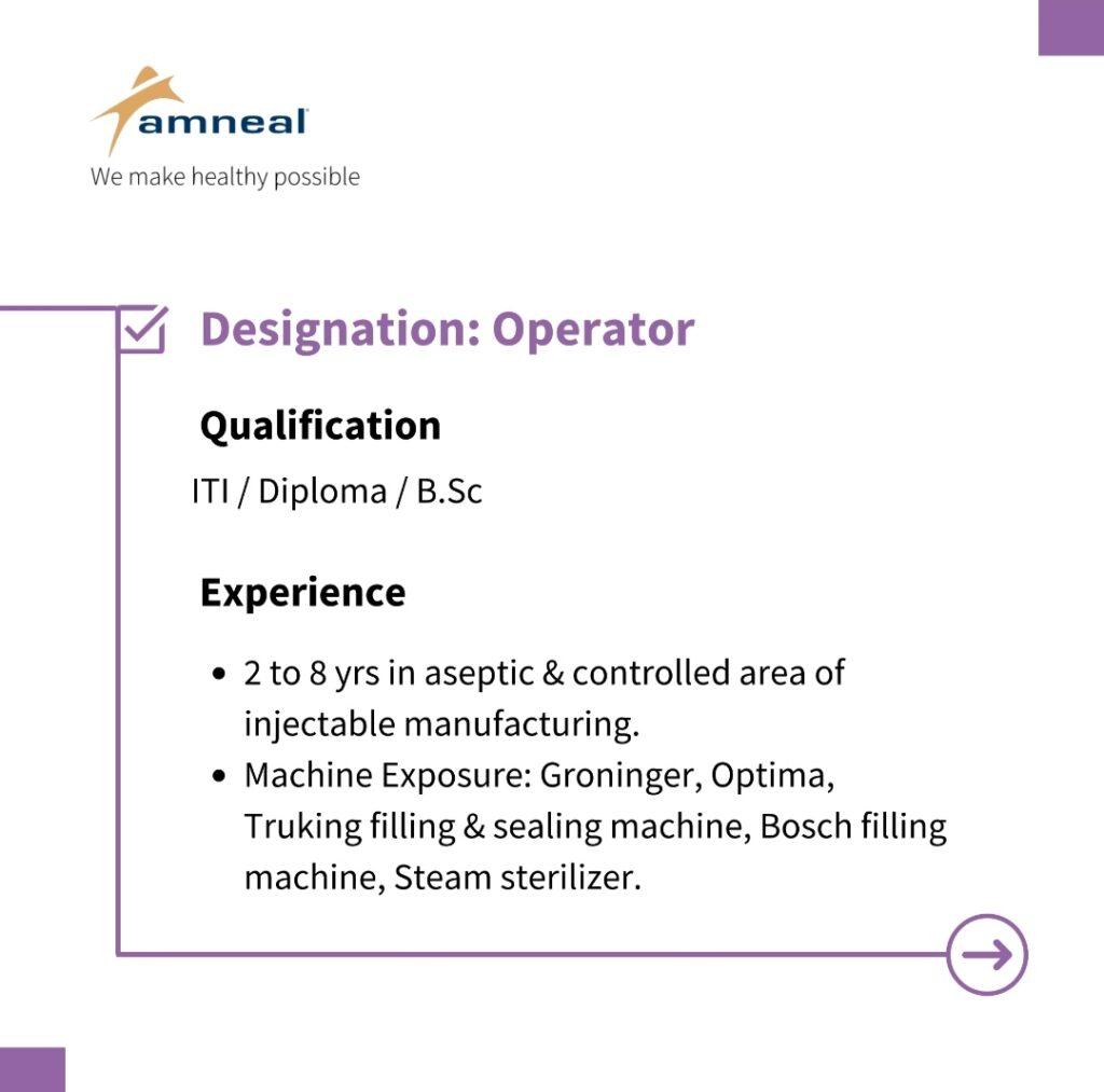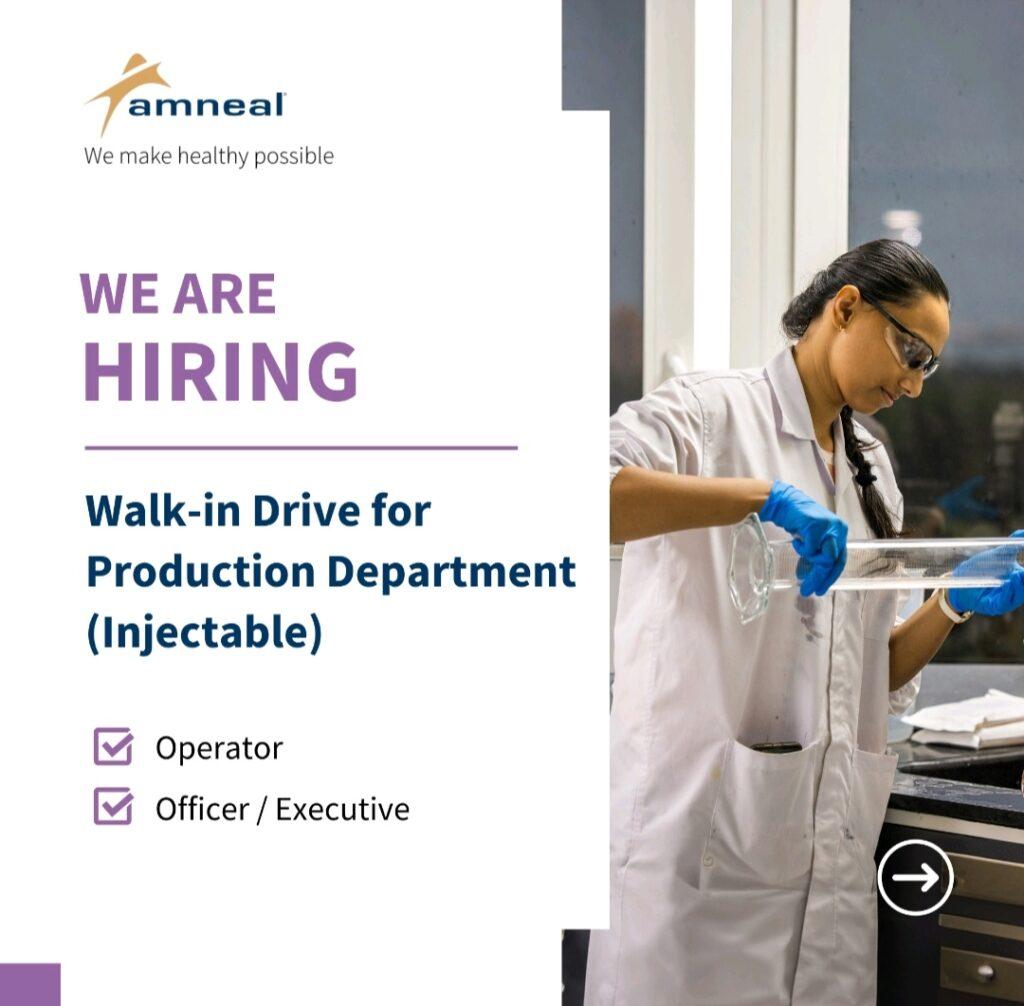 Walk-in Drive for Production Department on 25th Feb 2024 (Sunday) @Amneal Pharmaceuticals