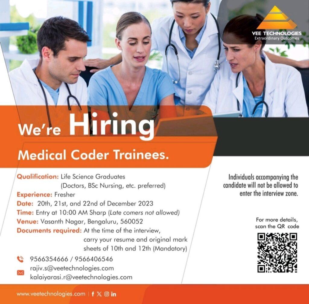 Walk-In For Medical Coding Freshers @ Vee Technologies, Bangalore on December 20,21 & 22