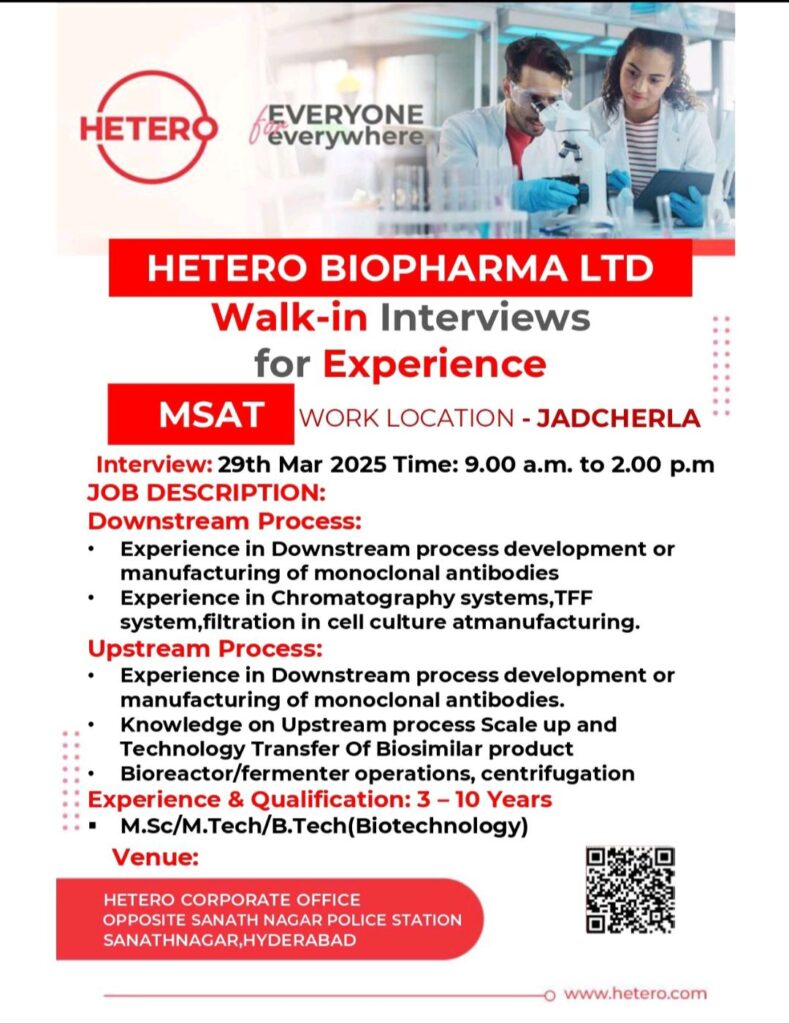Walk-in Interviews for Experience MSAT