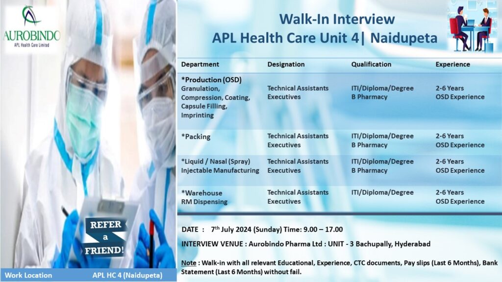 Walk-In Interview APL Health Care Unit 4| Naidupeta