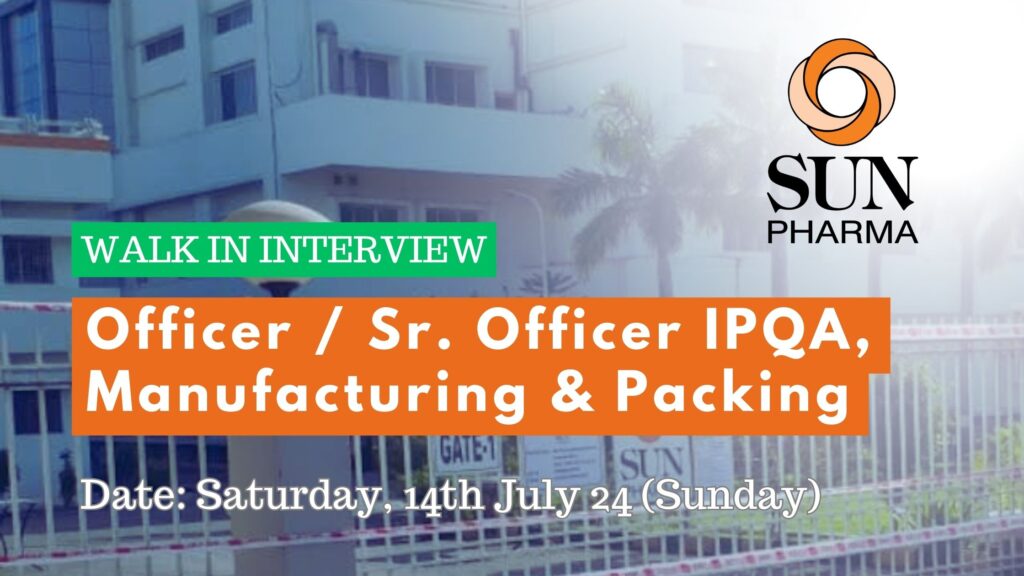 Walk-In Interview For Sun Pharmaceutical Industries Limited, Dadra on 14th July 24 (Sunday)