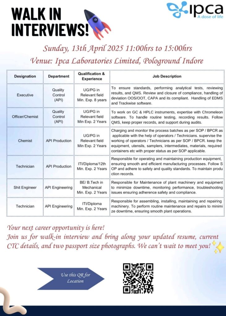 Venue: Ipca Laboratories Limited, Pologround Indore