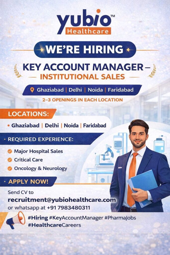 Yubio Healthcare, a growing name in the Indian healthcare and pharmaceutical sector, is inviting applications for the position of Key Account Manager – Institutional Sales. This is an excellent opportunity for experienced pharma and hospital sales professionals looking to build a strong career in institutional marketing and key account handling.