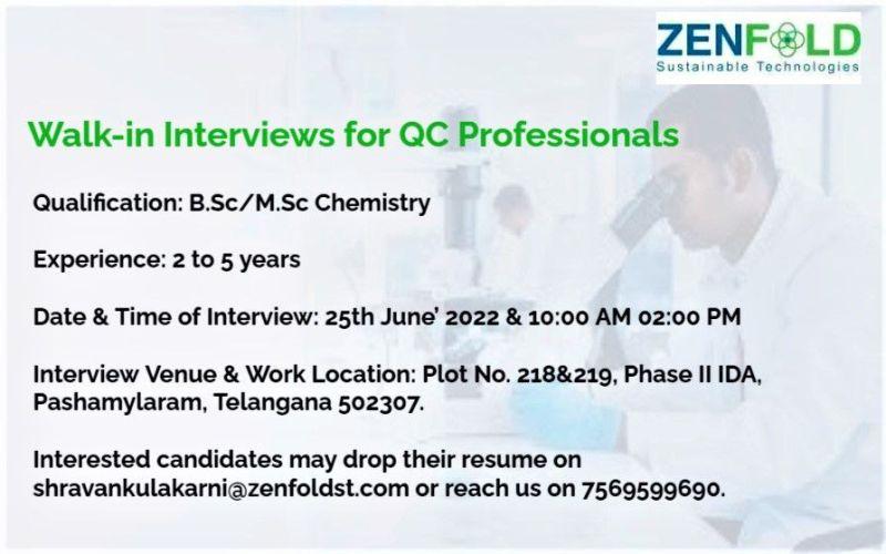 Zenfold Walk-in Interviews for QC Professionals on 25th June’ 2022
