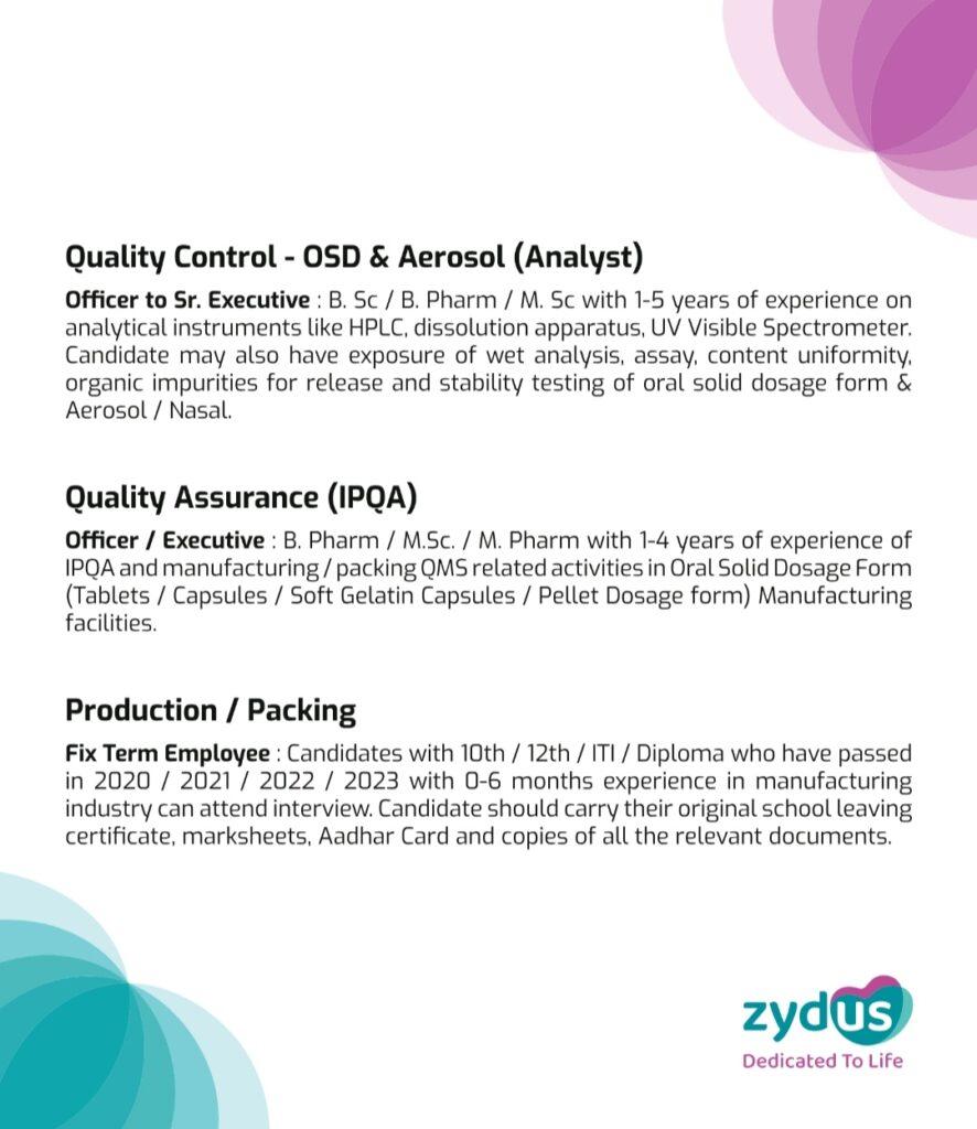 PHARMA JOBS POST > Ahmedabad pharma jobs > Zydus Group Inviting candidates for Formulation Manufacturing Plant, Ahmedabad on 27th August 2023