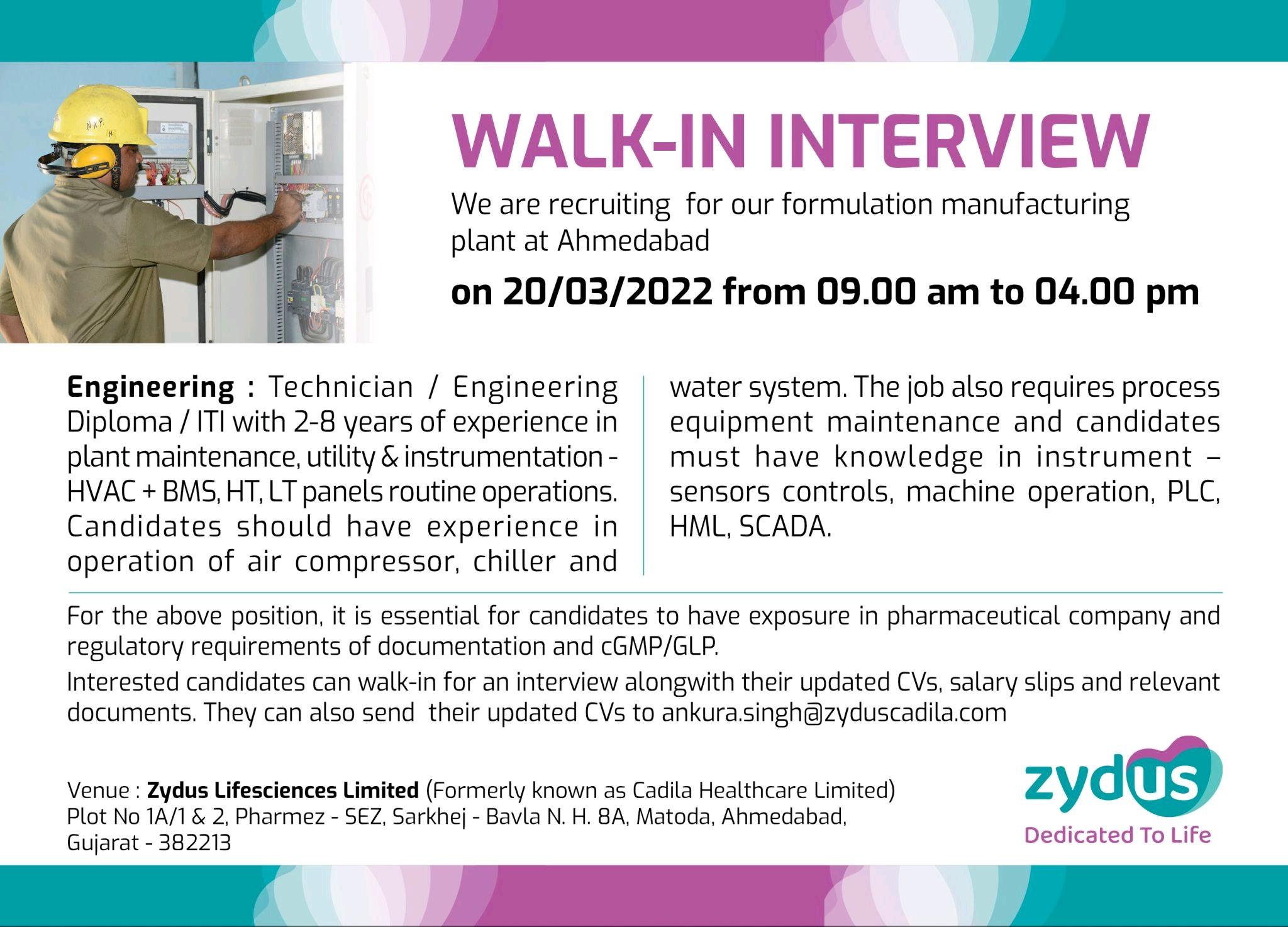 Interested candidates can send their resumes to sujan.patel@zyduslife.com
