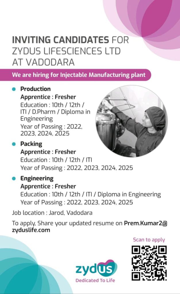 To apply. Share your updated resume on Prem.Kumar2@ zyduslife.com