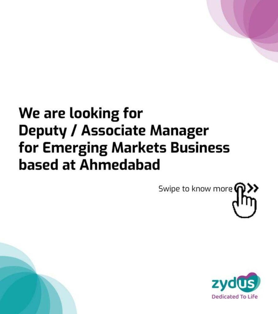 Zydus looking for Deputy / Associate Manager for Emerging Markets Business based at Ahmedabad