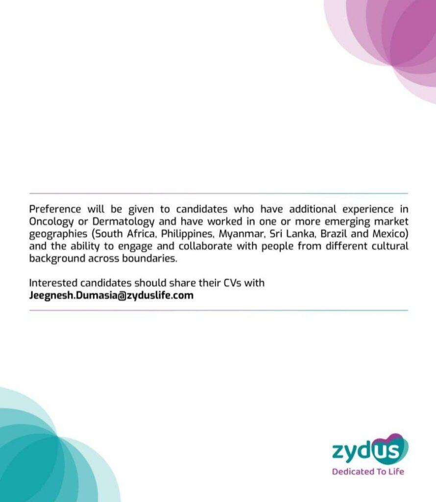 Interested candidates should share their CVs with Jeegnesh.Dumasia@zyduslife.com