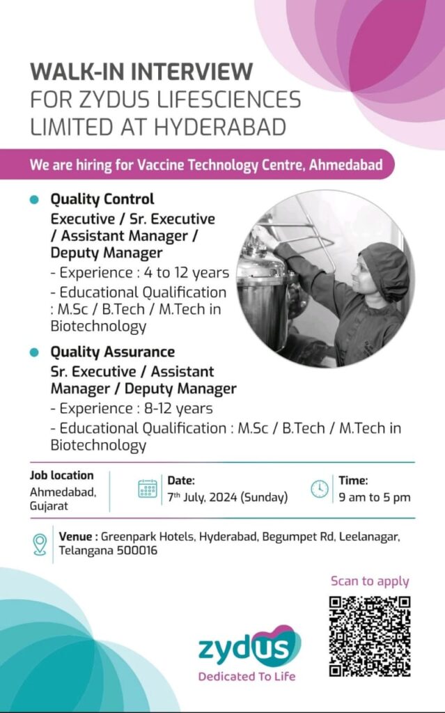 APPLY THROUGH LINK 🔗 https://zydusgroup.darwinbox.in/ms/candidate/careers/a667932fe8ffd6/custom_source/WalkIn%20Hyderabad%20for%20vaccine%20Biotech%20experience%20QC%20QAndidate