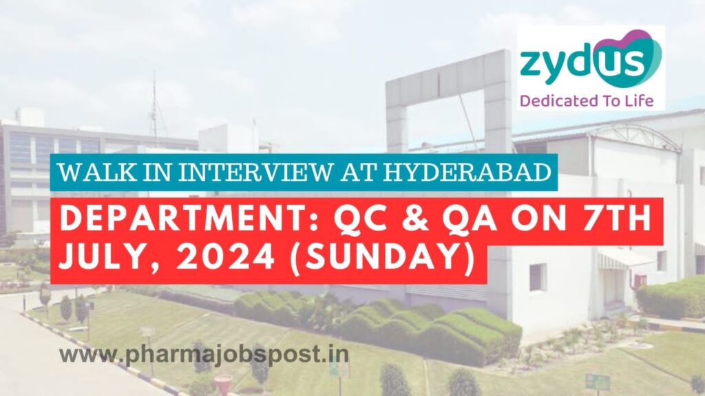WALK-IN INTERVIEW FOR ZYDUS LIFESCIENCES LIMITED AT HYDERABAD