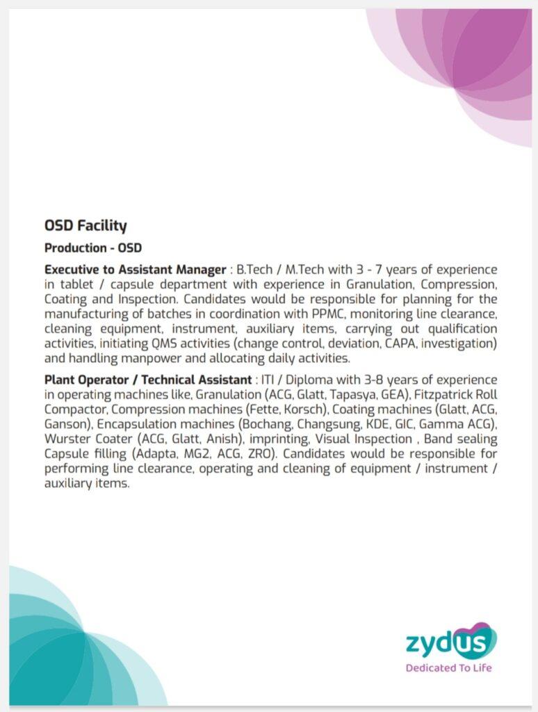 2. For Quality Assurance role B.Pharm / M.Pharm candidates are required with IPQA experience in OSD.