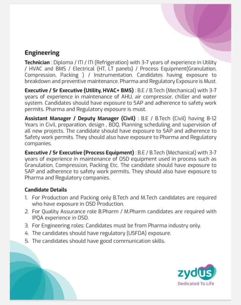 3. For Engineering roles: Candidates must be from Pharma industry only.