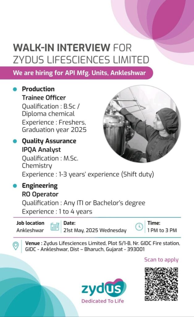 Venue: Zydus Lifesciences Limited, Plot 5/1-B, Nr. GIDC Fire station,
